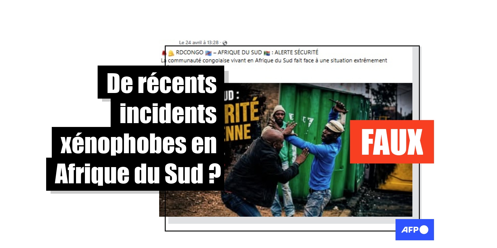 Cependant, les deux premières photos ne montrent pas des agressions récentes, elles datent en réalité de plusieurs années. Les victimes qu’on voit sur les images n’étaient d’ailleurs pas congolaises. Brandir ces clichés comme s'ils étaient actuels, vu leur violence, participe à déformer la réalité de la situation et générer la peur, alors que le pays est en effet en proie à un regain réel de tensions xénophobes.