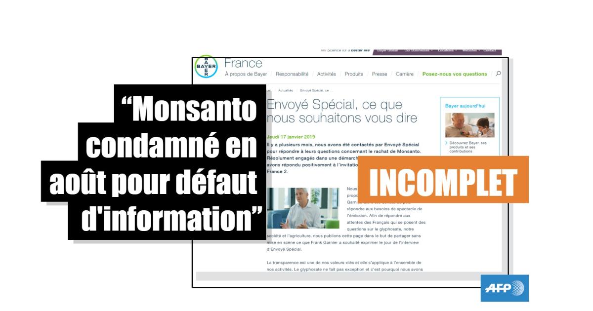 Quelques articles de presse en langue française ont aussi fait de ce "défaut d'information" sur la dangerosité du Roundup la cause unique ou principale pour laquelle Monsanto a été jugé lors du procès californien.