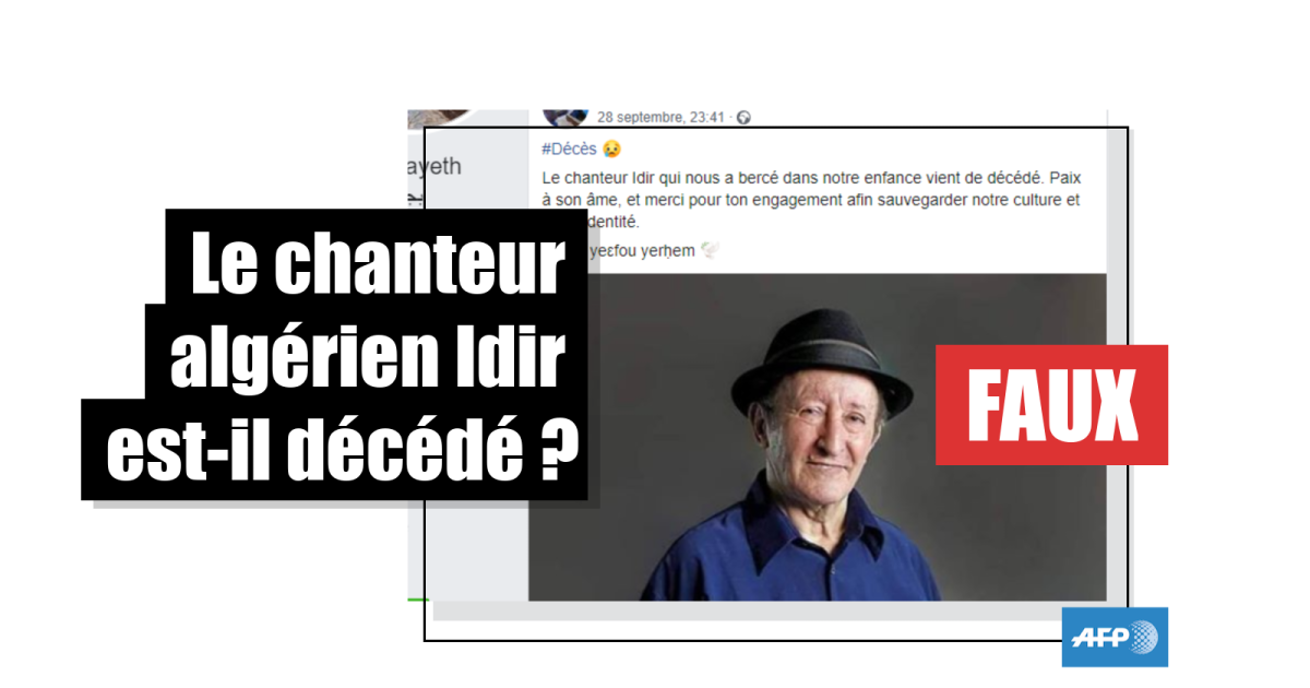 L’information selon laquelle le chanteur algérien, Idir, est décédé a été partagée sur Facebook le 28 septembre. Ici, la publication, qui rendait hommage à la carrière musicale de l’artiste kabyle, a suscité plus d’une centaine de partages et de nombreux commentaires.