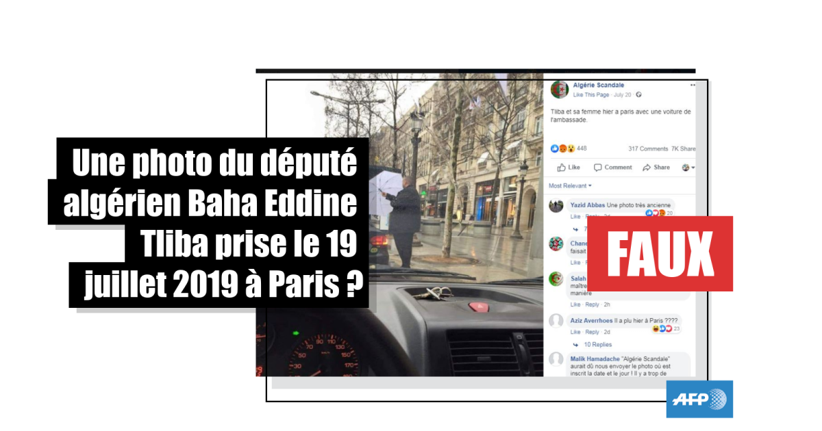 Le député algérien Baha Eddine Tliba photographié le 19 juillet 2019 à Paris ? Non, une vieille photo qui circule depuis 2016