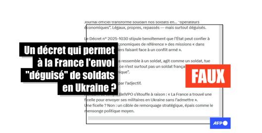 Image Guerre en Ukraine Publié le 24/11/2025 Non, un récent décret ne permet pas à la France d'intervenir de manière "déguisée" en Ukraine