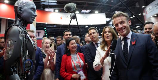 Image Intelligence artificielle Publié le 24/11/2025 Un robot doté d'IA qui "humilie" Emmanuel Macron ? C'est un montage