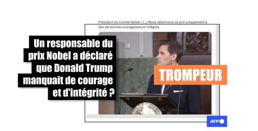 Image Donald Trump Publié le 22/10/2025 Attention à ces publications déformant les propos du comité Nobel sur Donald Trump