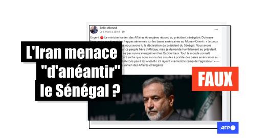 Image Iran Publié le 19/03/2026 Non, l’Iran n’a pas menacé de frapper le Sénégal dans le cadre de la guerre au Moyen-Orient