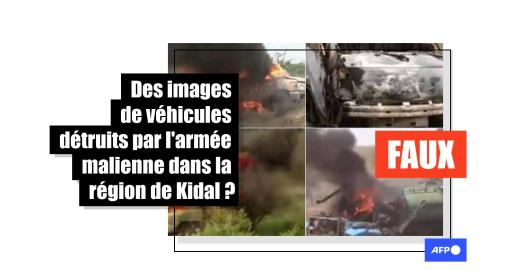 Image Publié le 23/10/2023 Des véhicules détruits par l'armée malienne dans la région de Kidal ? Attention à ces photos décontextualisées