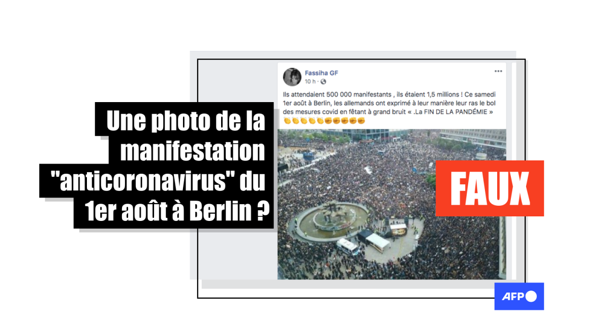 Quelque 20.000 personnes, selon la police allemande, et 1,3 million de personnes, selon les organisateurs, ont réclamé samedi à Berlin l'abolition des mesures contraignantes pour combattre le Covid-19. Dans la foulée, de nombreuses photos – parfois sans rapport avec l'évènement – ont été publiées sur les réseaux sociaux pour témoigner de l'ampleur de la manifestation.