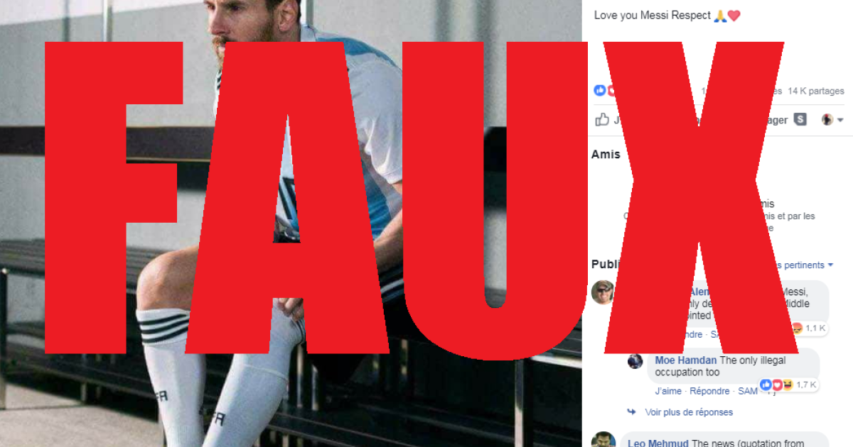 Messi déclare ne pas vouloir "jouer contre des gens qui tuent des enfants palestiniens innocents" ? Il n’a jamais dit ça