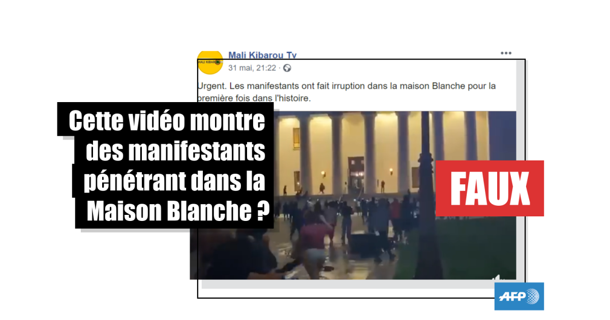 “Urgent. Des manifestants ont fait irruption dans la Maison Blanche pour la première fois dans l’histoire”. Cette nouvelle étonnante, partagée par la page Facebook Mali Kibarou TV, a été partagée plus de 34.000 fois depuis sa mise en ligne le 31 mai.