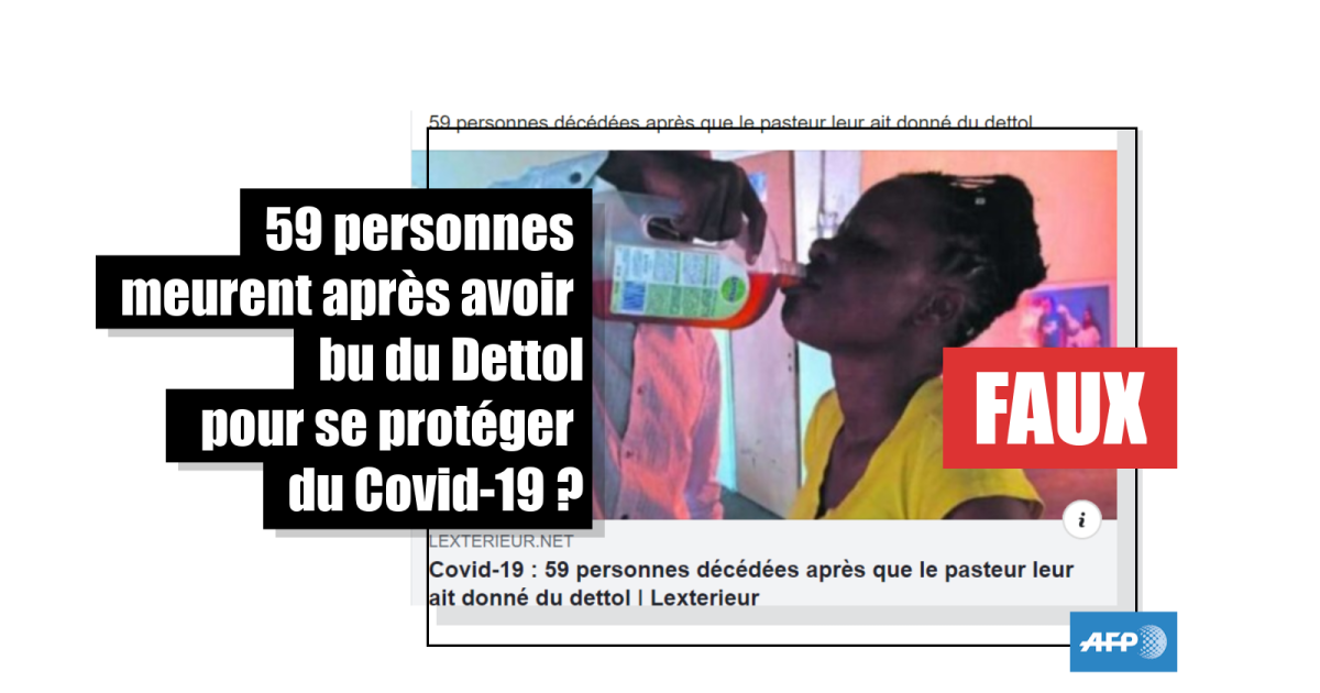 "Covid-19: 59 personnes sont décédées après avoir bu du dettol administré par un pasteur en Afrique du Sud", lit-on dans un article paru dans le pure player ivoirien Lexterieur.net, repris par les sites DoingBuzz ou Ivoire Matin.