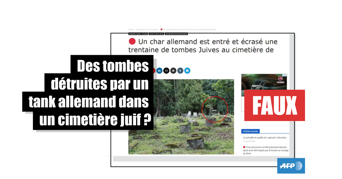 "Un char allemand est entré et a écrasé une trentaine de tombes juives au cimetière de Kaunas". C'est ce qu'affirment plusieurs publications, certaines citant "un rapport publié sur le site internet de la communauté juive de Kaunas", deuxième ville du pays.