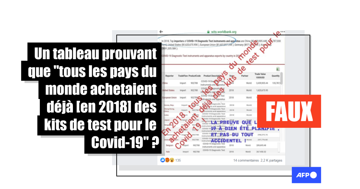Pour autant, il ne prouve pas que "tous les pays du monde achetaient déjà des kits de test pour le Covid-19" avant la détection du Sars-Cov-2 en décembre 2019 en Chine.