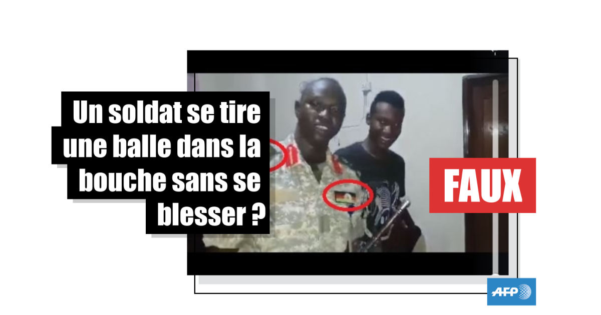 Sur cette vidéo, un homme se tire une balle dans la bouche avec trois armes de poing différentes. Après une détonation, l’homme recrache de la fumée et un morceau métallique. L’homme se vante ensuite de pouvoir protéger le président du Soudan du Sud, Salva Kiir.
