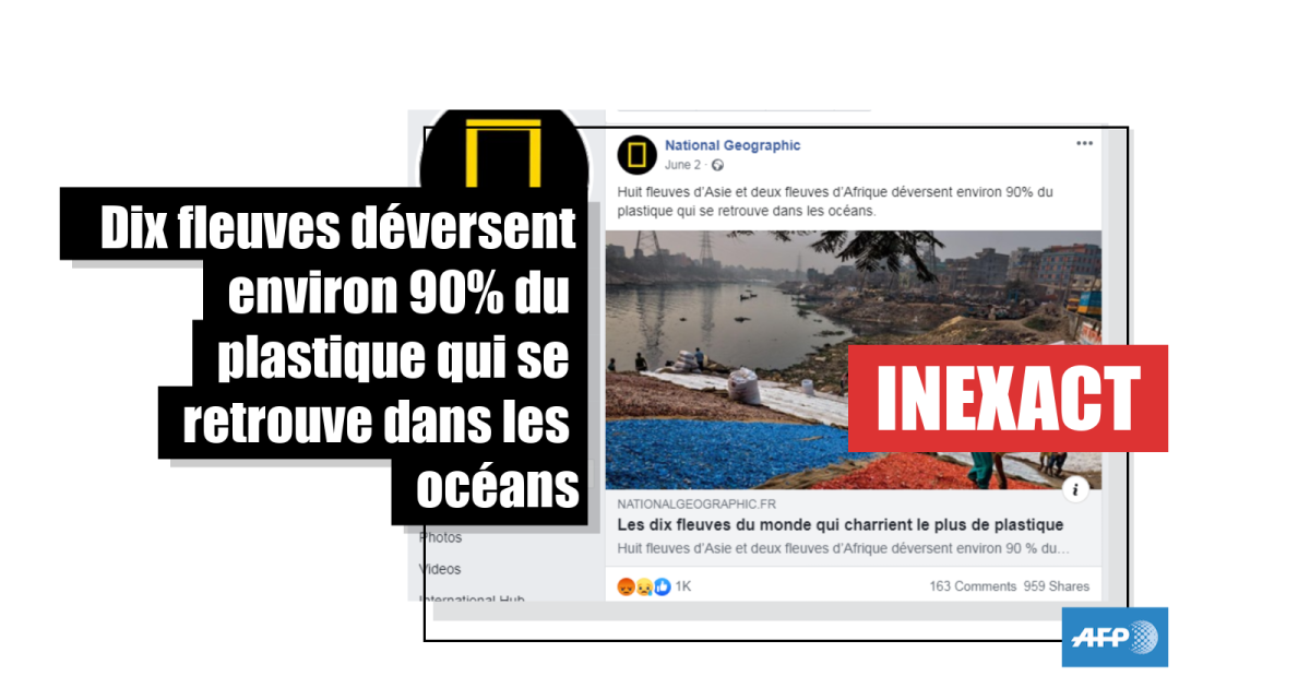 Dans son article, le National Geographic écrivait que "ces dix fleuves seraient responsables de 88 à 95% de la déverse océanique mondiale de déchets en plastique de toutes les tailles", une affirmation qui colle davantage aux résultats de l’étude mais qui n’est pas mise en avant, ni dans le début de l’article, ni sur les réseaux sociaux.