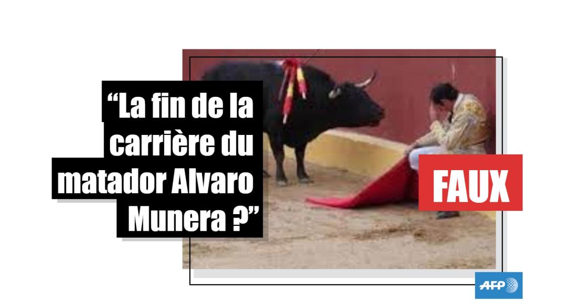 “Cette photo incroyable marque la fin de la carrière du matador Alvaro Munera”, affirme la légende d’une photo partagée des dizaines de milliers de fois sur Facebook dans plusieurs langues.