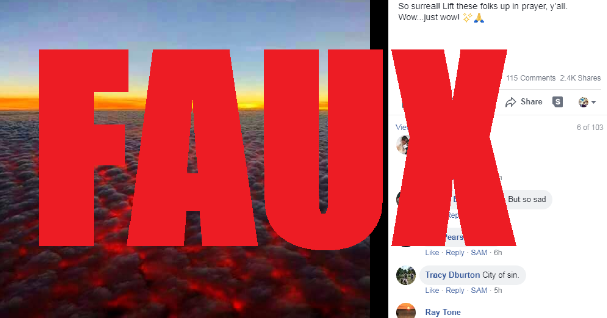 Selon la plupart des internautes l’ayant publiée, il s’agit d’une vue aérienne des nuages situés au dessus de la Californie, actuellement ravagée par le plus grand incendie de son histoire.