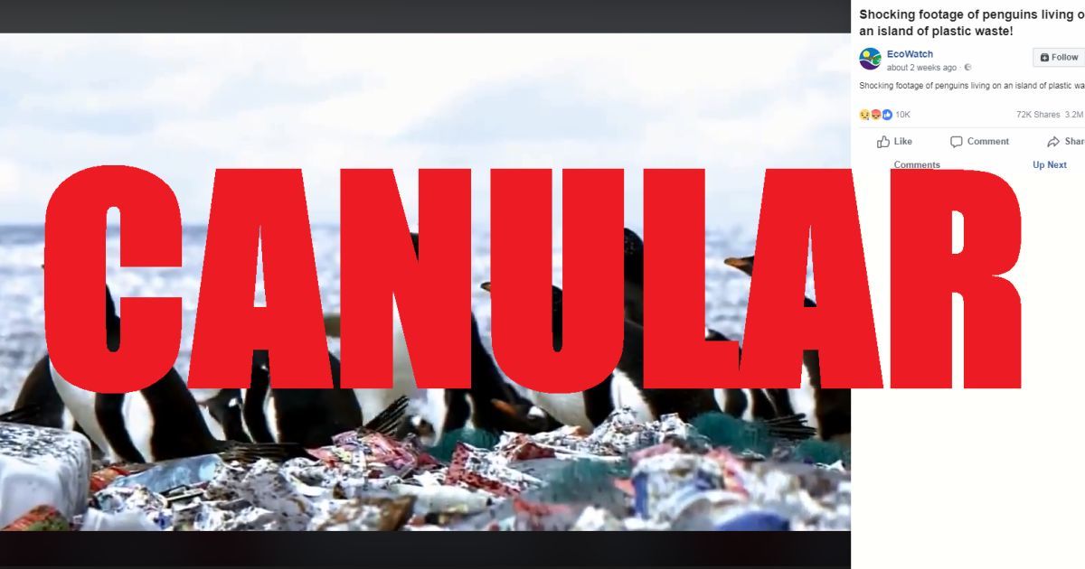 De nombreux internautes ont été horrifiés de découvrir une vidéo, rapidement devenue virale, montrant une colonie de manchots vivant sur une île composée de déchets plastiques. Il s'agit d'une vidéo truquée. Postée par la branche suisse du WWF (World Wide Fund for Nature), une ONG luttant pour la protection de l'environnement et de la biodiversité, cette vidéo de manchots est un montage élaboré visant à faire un poisson d'avril pour dénoncer la pollution des océans.