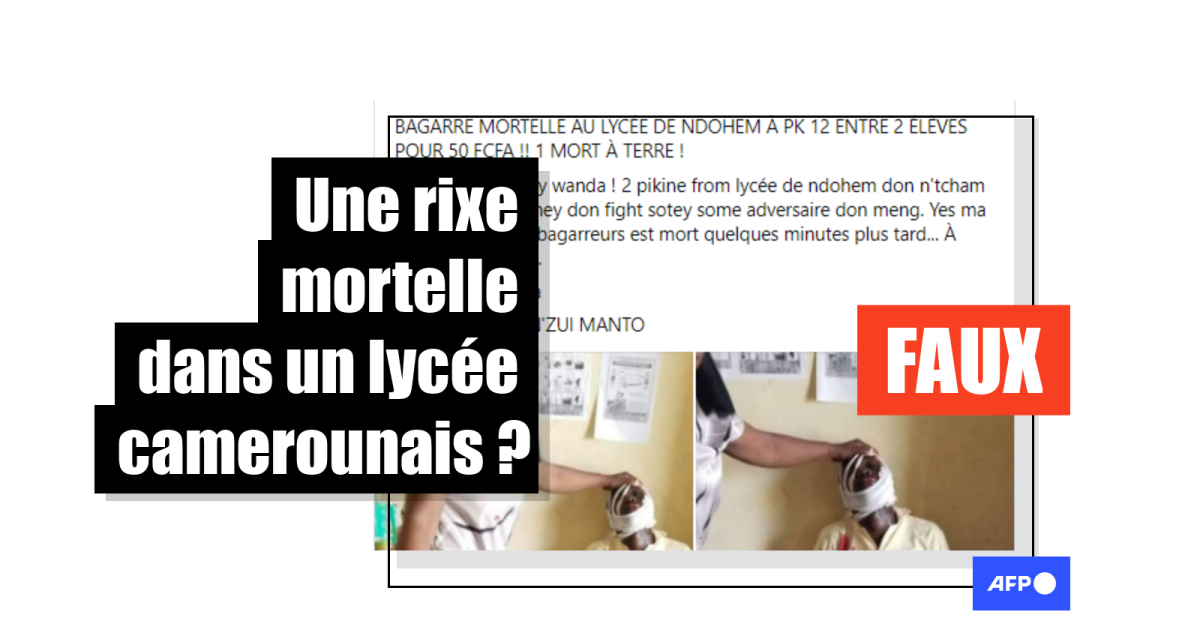 Sur la photo, un jeune homme se tient tête renversée sur une chaise, le visage entouré d’un épais bandage, la chemise et le pantalon ensanglantés. "BAGARRE MORTELLE AU LYCÉE DE NDOHEM", titre l’auteur de cette publication partagée plusieurs centaines de fois sur Facebook depuis le 14 janvier.