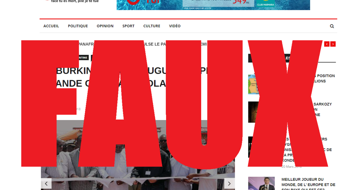 L'article, publié par coupsfrancs.com, affirme en capitales dans son titre que "LE BURKINA FASO INAUGURE LA PLUS GRANDE CENTRALE SOLAIRE DU MONDE".