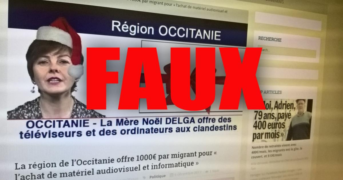 Dans cet article, déjà publié fin décembre 2016, Carole Delga, patronne PS de la région Occitanie, est dépeinte en "mère Noël" dispendieuse: "le 16 décembre fut proposé et voté une aide supplémentaire de 1000 euros par migrant. Toutefois, cette aide a une particularité. Elle n’est ni destinée au logement, ni à la nourriture mais à l’achat de matériel audiovisuel et informatique" dénonce le site.