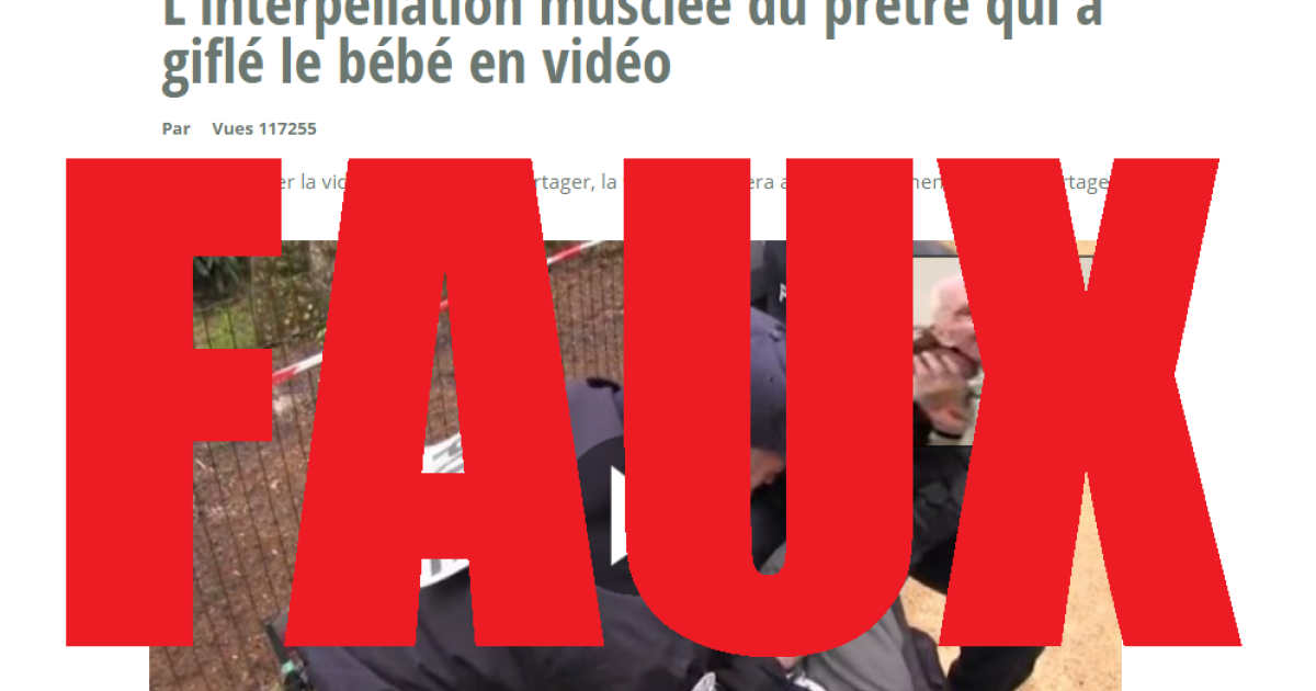 “Le prêtre qui avait giflé un bébé retrouvé inconscient près de son domicile” ; “Le prêtre qui a giflé un bébé violemment agressé devant son épouse” ; “L’interpellation musclée du prêtre qui a giflé le bébé en vidéo” ; les sites france-actus.eu, univers-actu.eu ou monde-actus.eu diffusent depuis plusieurs jours de fausses informations sur le prêtre de 89 ans, qui avait giflé un bébé et ainsi suscité une vive indignation sur les réseaux sociaux.