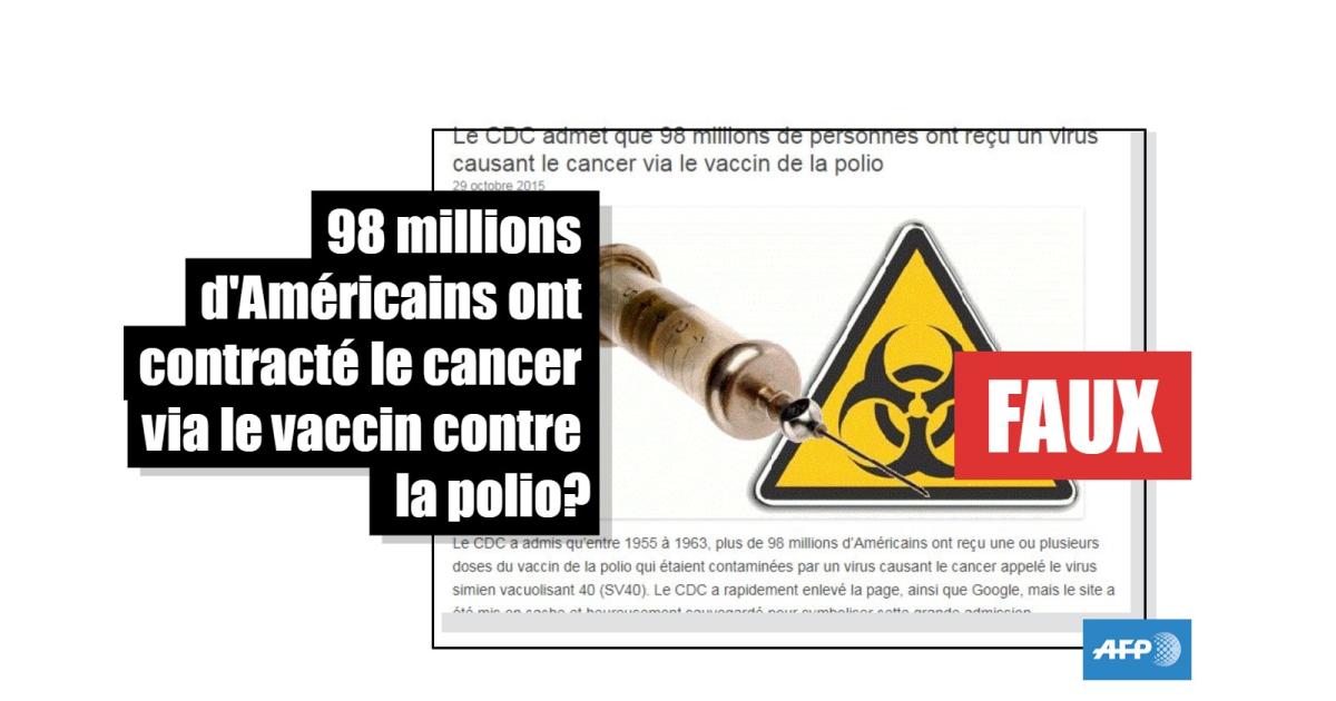 “Le CDC admet que 98 millions de personnes ont reçu un virus causant le cancer via le vaccin de la polio”, affirme un article en français, basé sur les informations d'un site anglophone qui fustige de supposées vérités cachées sur la vaccination.