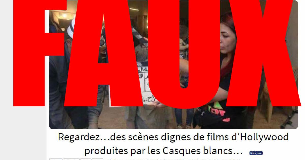 "Les Casques blancs démasqués par des photos" titre Mondialisation.ca tandis qu'un autre site s'insurge : "Regardez… des scènes dignes de films d’Hollywood produites par les Casques blancs…"
