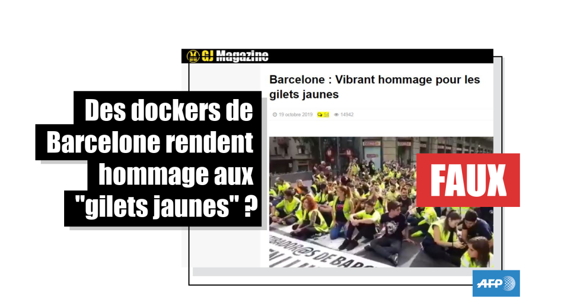 Ces publications s'appuient sur des vidéos diffusées sur Twitter par un journaliste d'El Pais, Alfonso Congostrina, au sujet d'une manifestation le 18 octobre, pour affirmer que les dockers barcelonais auraient rendu un hommage au mouvement des "gilets jaunes".