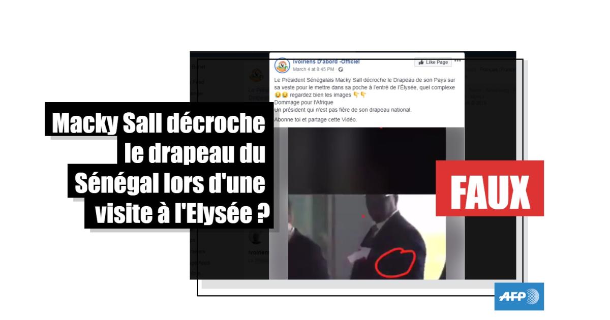 “Le Président Sénégalais Macky Sall décroche le drapeau de son Pays sur sa veste pour le mettre dans sa poche à l’entrée de l’Élysée, quel complexe, regardez bien les images. Dommage pour l'Afrique. Un président qui n'est pas fier de son drapeau national”, avance la page Facebook “Ivoiriens d’abord”.