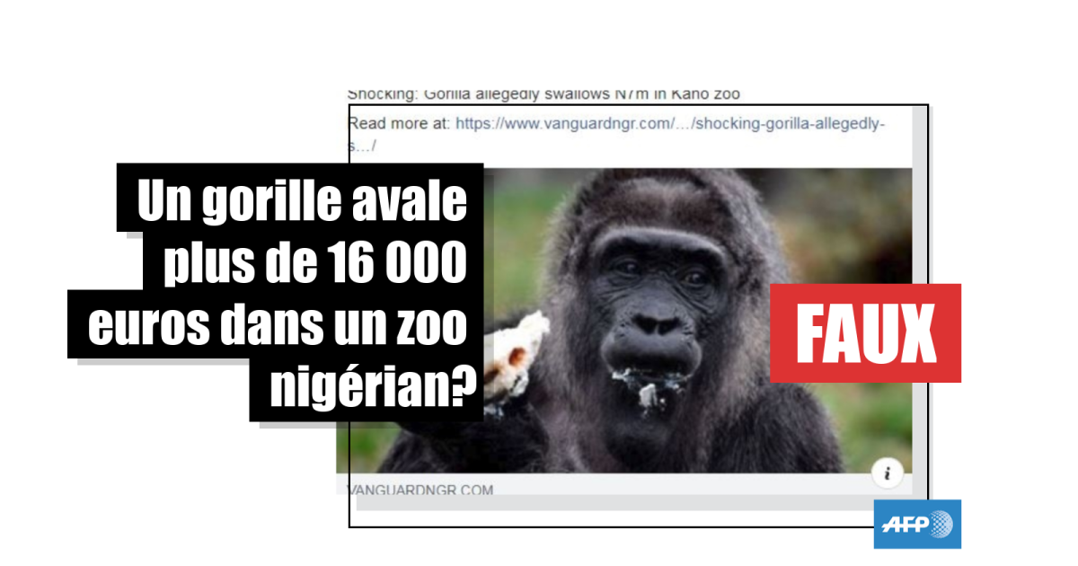 Non, un gorille n'a pas avalé plus de 16.000 euros dans un zoo nigérian