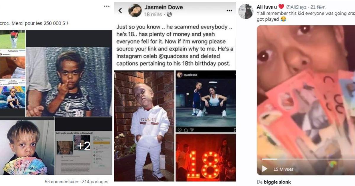 "Vous vous souvenez du gosse qui a rendu fou tout le monde hier ? Et bien vous vous êtes tous fait avoir", écrit un internaute sur Twitter le 21 février, après le lancement de la cagnotte. Sur la vidéo, Quaden agite une liasse de dollars australiens.