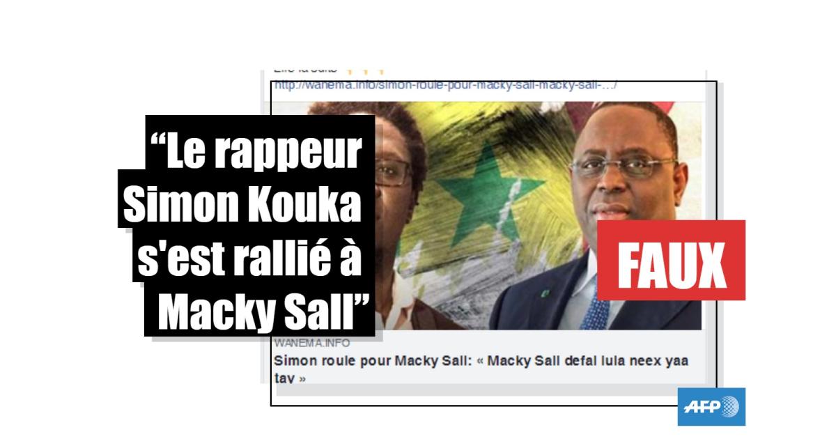 Plusieurs sites sénégalais, à l’instar de Limametti, Buzzclic ou PortableBi ont annoncé dans la journée du 14 février le ralliement du rappeur au président-candidat. “Simon Bisbi Clan aurait quitté le collectif ‘Y’en a marre’ pour soutenir le président sortant Macky Sall à quelques jours de l’élection présidentielle”, lit-on sur ces trois sites, dont les pages Facebook sont suivies chacune par plus de 100.000 internautes.
